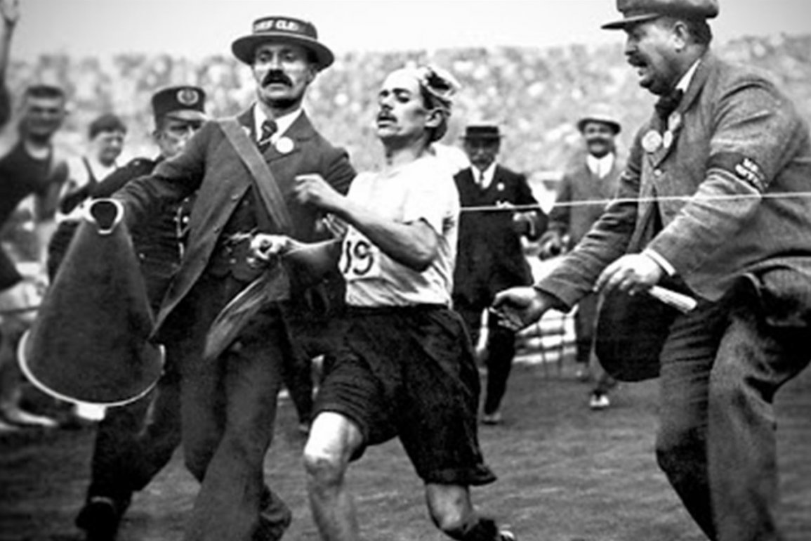 La prima edizione dei Giochi Olimpici moderni, quelli del 1896, passò alla storia anche grazie al maratoneta greco Spiridon Louis che rovesciò un bicchiere di cognac prima di tagliare il traguardo e vincere l’oro. E ancora, durante la maratona olimpica di St. Louis del 1904 Thomas Hicks sorseggiava regolarmente cocktail quasi mortali di stricnina, brandy e solfato. Ed è certo che alcuni corridori durante la maratona di Londra del 1908 avessero fatto uso di alcol e stricnina. Lo stesso Johnny Hayes ammise di aver fatto un gargarismo energizzante di brandy durante la gara, e anche la medaglia di bronzo Joseph Forshaw trincò del brandy, affermando che dopo “si sentiva bene” e fu in grado di continuare fino all’ultima tappa.