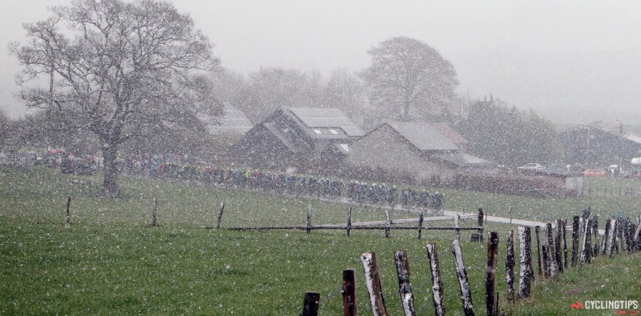 In quell’Aprile del 1980 a circa 91km dal traguardo e avvicinandosi alla salita di Stockeu, caratterizzata da un dislivello di 227m, il ciclista belga Rudy Pevenage si trovava a circa 1’ 15’’ davanti a Hinault. Ma nella salita successiva ecco che Hinault realizzò l’impossibile: un’accelerazione improvvisa che lasciò tutti indietro. Ma mancavano ancora 80km al traguardo ed era quello il momento di sfruttare l’arma vincente: la costanza. Per ben 7 ore Hinault resistette alla neve e al gelo continuando ad aggiungere distanza tra sé e gli avversari. Di questa grande impresa è rimasto il ricordo di quella sensazione di congelamento provata alle mani che, ancora oggi, lo accompagna nelle giornate più fredde. Hinault tagliò il traguardo con una distanza di 1’ 24’’ dal secondo. La stampa, il pubblico e gli avversari erano completamente sotto shock.