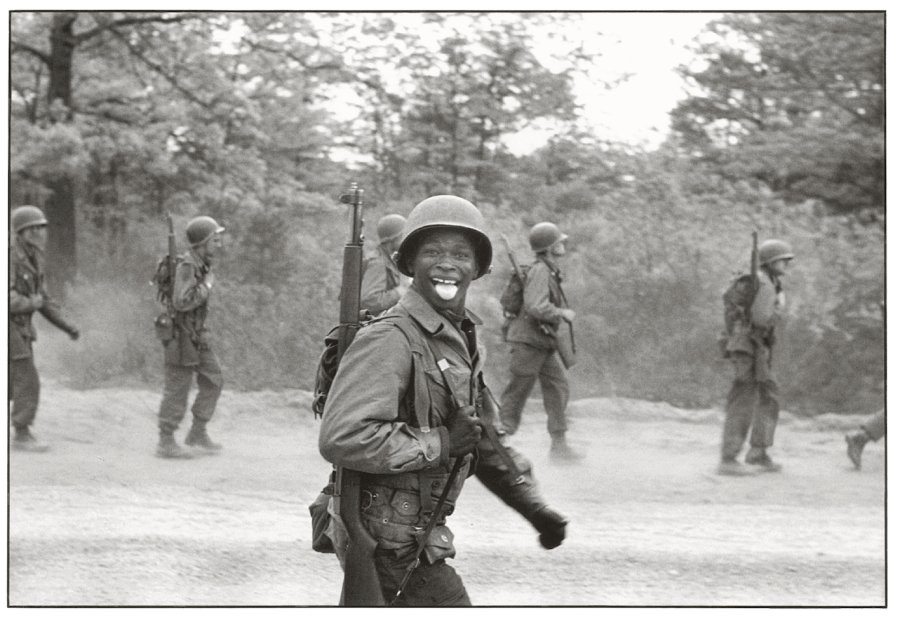 Elliott Erwitt è stato il fotografo dell’assurdo. Difficile trovare qualcuno che più di lui abbia raccontato con la stessa sensibilità e semplicità quei momenti inusuali e irrazionali che intralciano di tanto in tanto la nostra quotidianità. Nel corso di una carriera straordinariamente varia e peripatetica durata più di 70 anni, la sua macchina fotografica ha raccolto un intero panorama di immagini che messe insieme raccontano più di un’epoca. La lacrima di Jacqueline Kennedy incagliata nel velo scuro della donna durante i funerali del marito richiama il sorriso seducente di Marilyn Monroe, in una foto scattata quasi per caso; il sorriso del soldato di colore durante un’esercitazione nel 1951 in piena segregazione razziale ci porta direttamente a quella di un bambino nero che sorridendo si punta una pistola giocattolo alla testa; e poi i cani con le loro buffe espressioni fungono da perfetto contraltare alla pomposità e alla ricercata compostezza dei loro padroni.