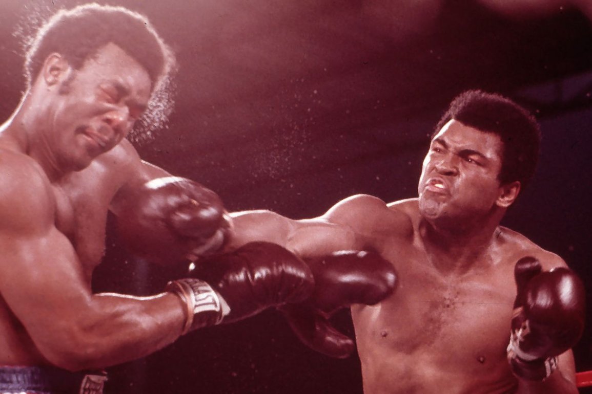 Nel 1974, George Foreman era un orco invincibile: 24 anni, campione mondiale dei pesi massimi, imbattuto. Aveva appena fatto letteralmente volare Joe Frazier sei volte al tappeto in due round. Nessuno voleva salire su quel ring con lui. A 13 anni era già alto 1,88m per 90kg. Suo fratello Roy ha raccontato: “Era il terrore del quartiere. Ti prendeva la bici non perché gli servisse, ma perché poteva“. Portava quella ferocia anche sul ring: “Diceva sempre che voleva uccidere qualcuno sul ring. E io gli credevo“.