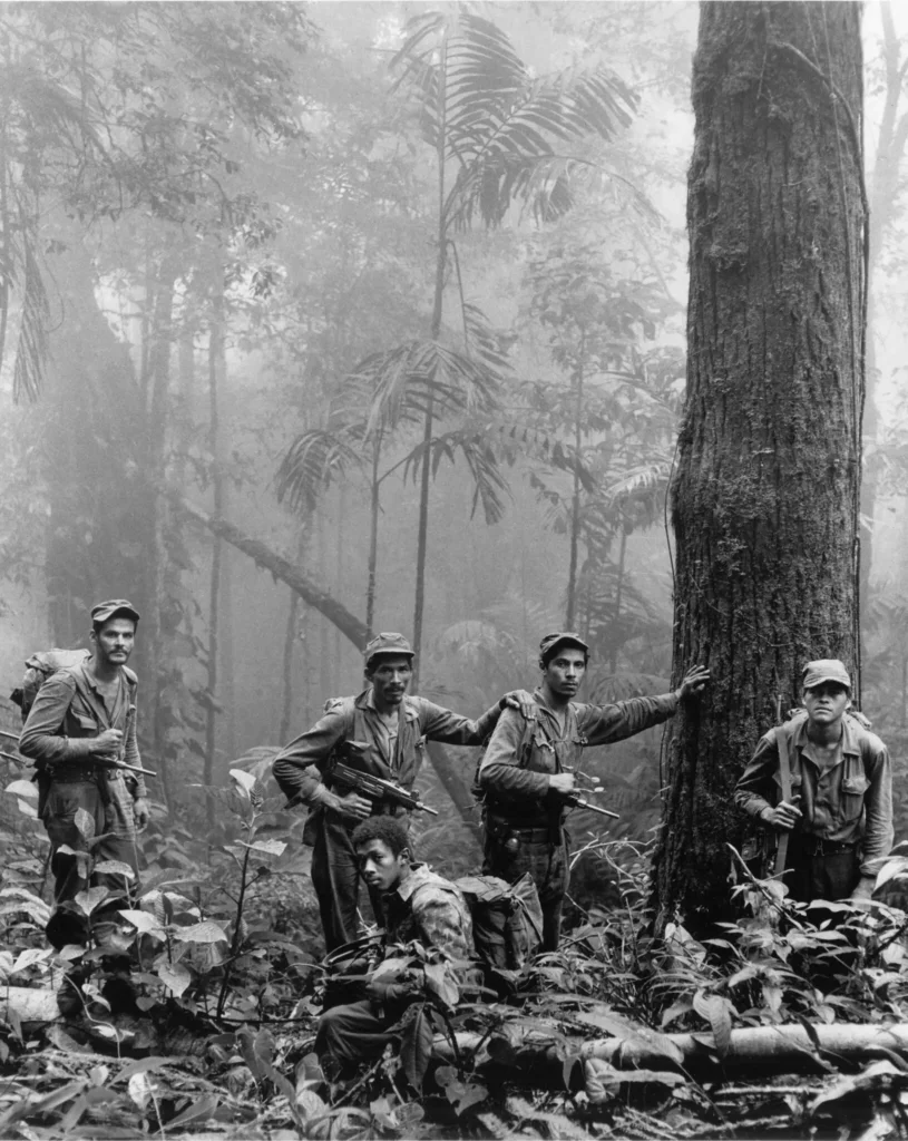 Ma Moya non si limitò a Città del Messico. Seguì i guerriglieri in Venezuela e Guatemala, documentò le piantagioni della United Fruit Company a Panama e raccontò l’invasione americana della Repubblica Dominicana nel 1965. Marxista convinto, con la sua Leica registrò l’eco della rivoluzione cubana degli uomini in divisa improvvisata con le armi rudimentali e i volti scavati dalla fatica. Uno dei suoi scatti più celebri nacque quasi per caso, all’Avana, nel 1964: Che Guevara, assorto e malinconico, ritratto con un sigaro.