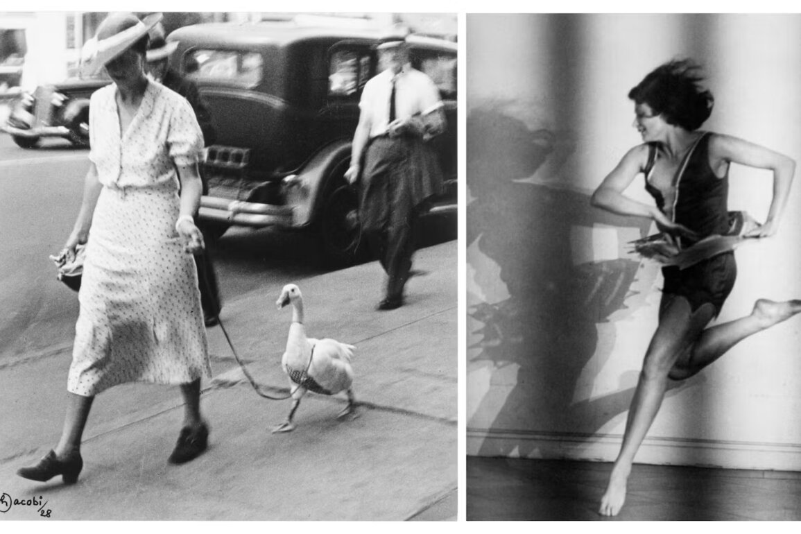 In America la loro fotografia cambia pelle, come cambia pelle chi arriva da esule e deve ricominciare senza rete. Ruth approda a New York e diventa finalmente un occhio autonomo, indipendente dal brand Atelier Jacobi. Le interessa la gente comune, i marciapiedi, le piccole scene che raccontano un’epoca meglio di mille discorsi, come una donna che porta a spasso un’oca, un venditore nel Lower East Side o il teatro quotidiano di Manhattan.