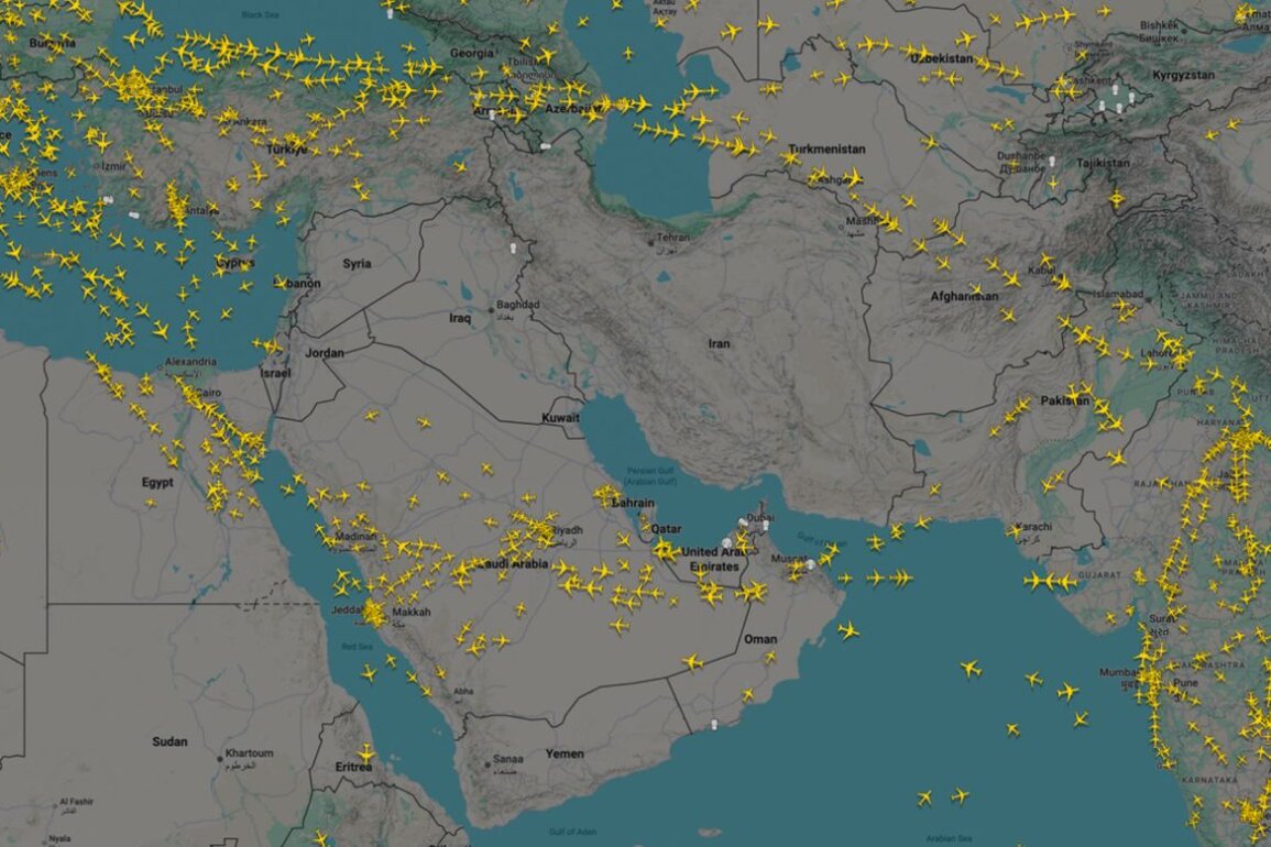 La chiusura dello spazio aereo in Medio Oriente sta imponendo significative deviazioni alle rotte dei voli a lungo raggio, con un conseguente aumento dei consumi di carburante e dei costi operativi, oltre a generare disagi per i passeggeri e possibili ripercussioni su orari e tariffe su scala globale. | Fonte: Flightradar24